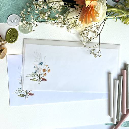 Ako sen krásna papierová obálka s akvarelovou maľbou kytice lúčnych kvetov jemnej ako sen.