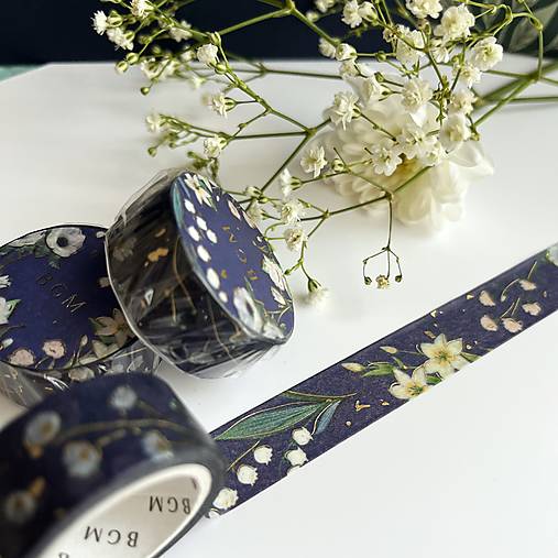 exkluzívna japonská washi páska Konvalinky na tmavomodrej